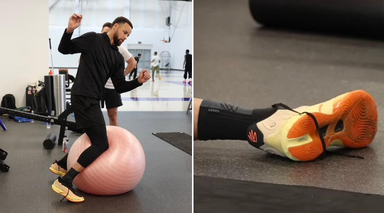 周日下午,全明星期间库里与约内斯库、欧文一同训练的照片和视频流出:他上脚了安踏狂潮5二代,鞋跟位置赫然印有库里品牌的Logo。